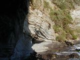 砂岩/凝灰岩の逆層の壁のようです。南繋船場奥、海岸園地、洞窟等のエリアがあるそうですが、はっきり言って、お勧めは致しません。