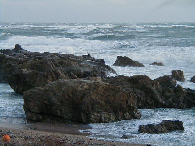 砂岩というか、泥岩というか、そんな岩です。まぁ、そこそこ登れるであろう岩が幾つかあります。波打ち際の岩が多いので、潮汐を調べてからが宜しいかと。