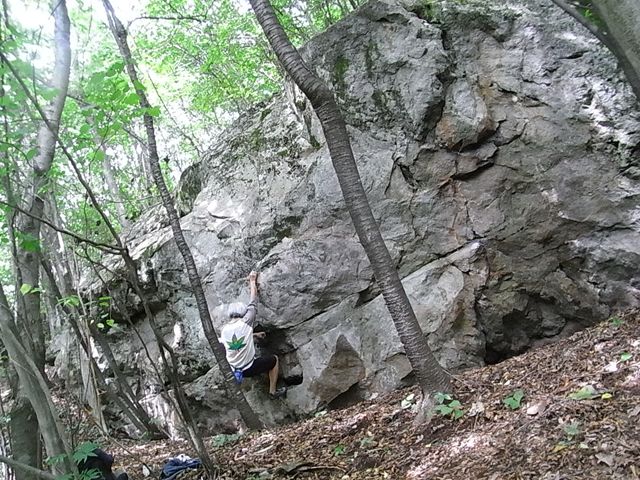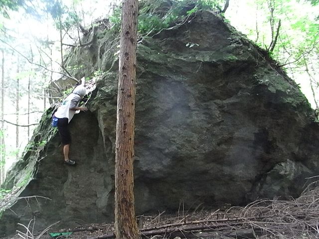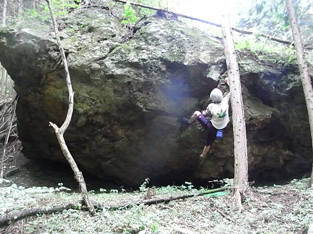 有笠山のちっぽけ岩周辺に点在するボルダーでの一齣です。