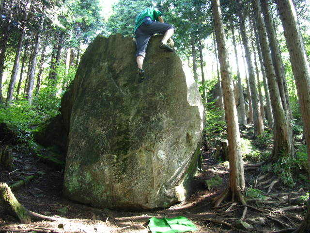 岐阜県美濃市の片知渓谷から瓢ヶ岳の山腹に点在するボルダーでの一齣です。