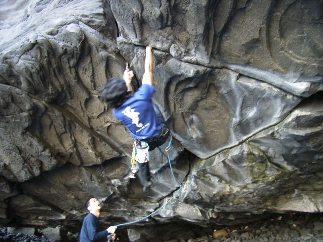 伊豆・城ヶ崎海岸に点在するボルダーでの一齣です。