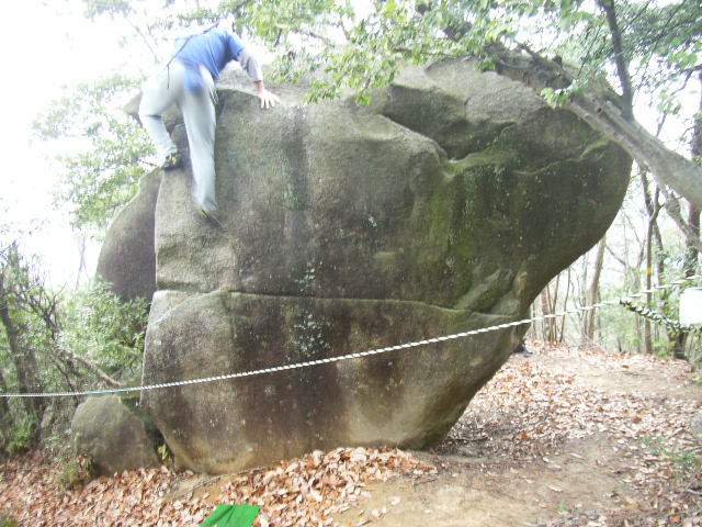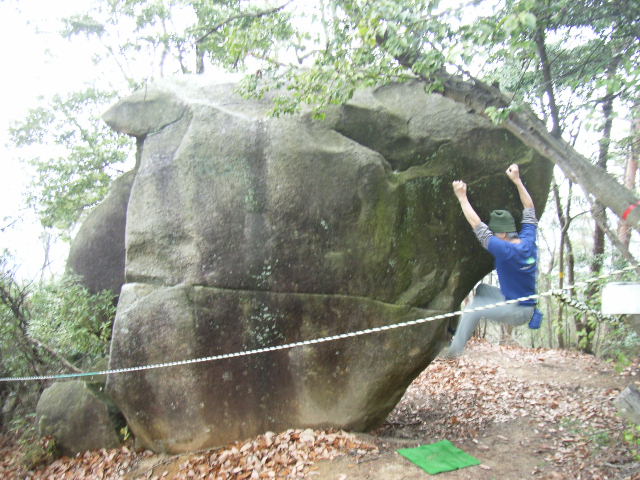 奈良県天理市の大国見山山頂直下に点在するボルダーでの一齣です。