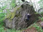 松原湖の隣、大月湖の脇に点在するボルダーでの一齣です。雨の中、無理して登ってみました。