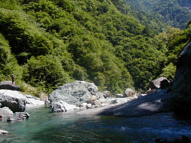 山梨県早川町の野呂川に点在するボルダー群です。半分泳ぎに行きました。