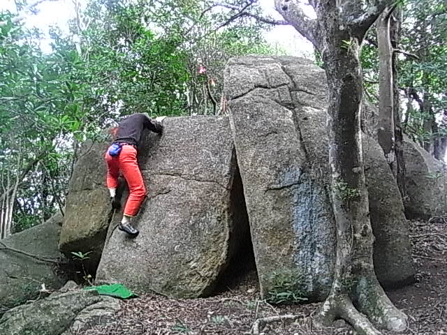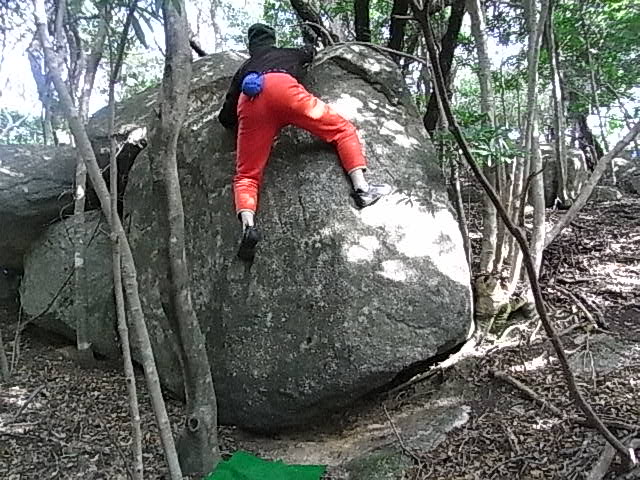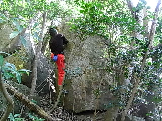 高知県大月町の大堂海岸に点在するボルダーでの一齣です。