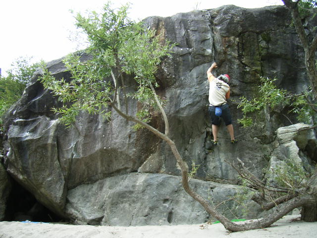![]() こめつぶ岩 「コシヒカリ」1級 (両手スローパーでSDスタート 左カチを取って直上は初段) |