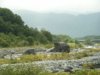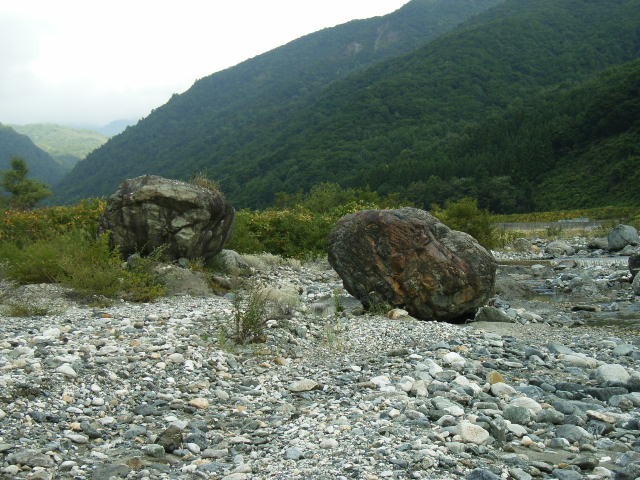 白馬三山を望む松川の川原に点在するボルダーでの一齣です。
