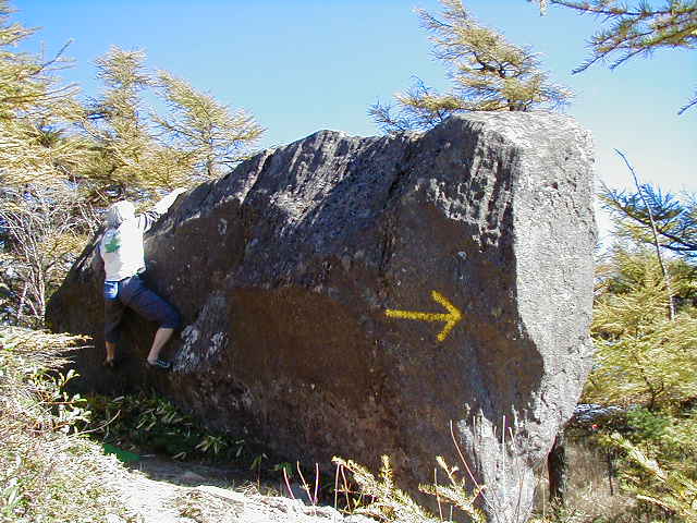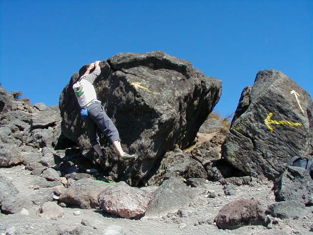 長野県小諸市近くの高峰高原の水の塔山に点在するボルダーでの一齣です。